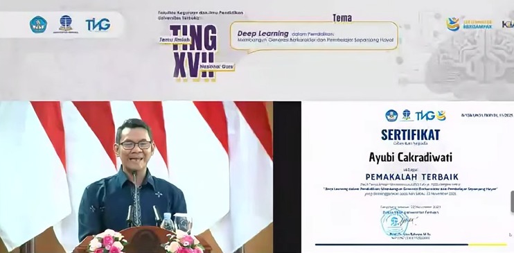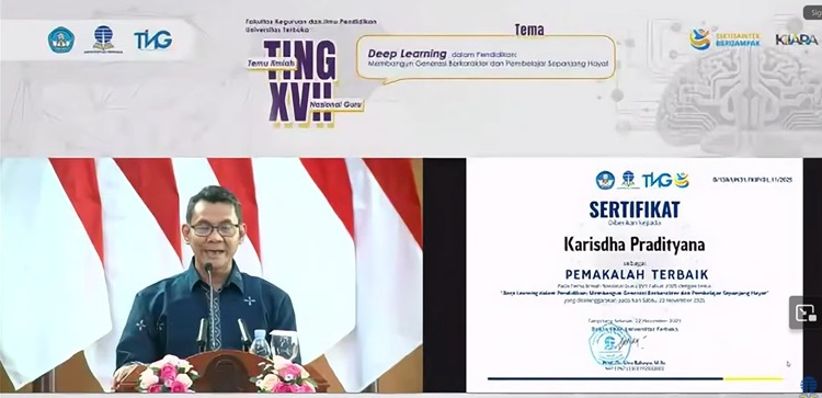 Pada penyelenggaraan tahun ini, tiga orang Dosen S1 PGSD FKIP UT menorehkan prestasi membanggakan. Dengan berhasil mendapatkan penghargaan sebagai pemakalah terbaik, setelah dinilai oleh tim reviewer berdasarkan kualitas substansi, relevansi tema, dan kontribusi penelitian terhadap praktik pendidikan. Ketiga penerima penghargaan tersebut adalah Ayubi Cakradiwati, S.Hum., M.Ed dengan makalah “Peran Pembelajaran Online Sebagai ‘Jembatan’ Menuju Pendidikan Inklusif di Sekolah Dasar: Kajian Pustaka Sistematik”; Karisdha Pradityana, M.Pd dengan makalah “Guru Bugar, Jiwa Bahagia: Hubungan Kebugaran Fisik dan Kesejahteraan Sosial-Emosional Guru”; serta Sukirno Hadi Raharjo, S.Pd.H., M.Fil.H. dengan makalah “Deep Learning untuk Pendidikan Karakter Catur Guru di Era Digital”.